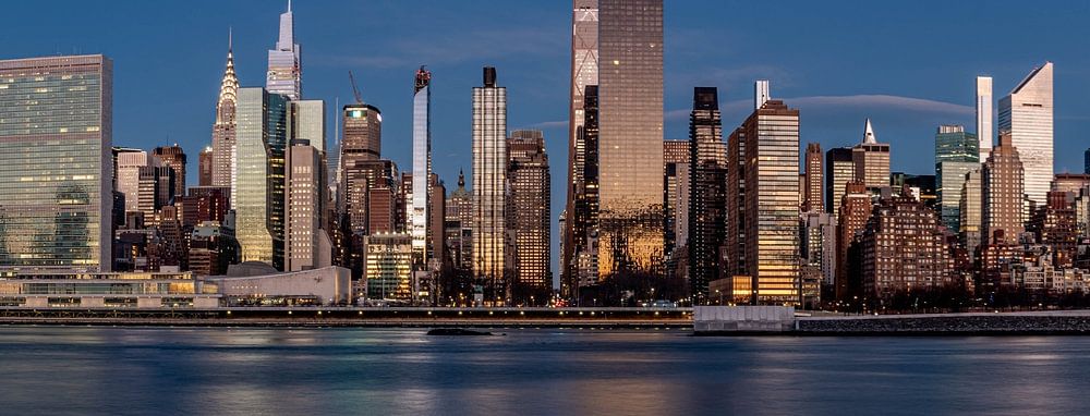 From Gantry Plaza State Park, you can enjoy an impressive view of the New York skyline at sunrise. The first rays of sunlight bathe the skyscrapers in a warm, golden light, while the cool, clear morning air lends the scenery a special freshness. A peaceful moment that captures the quiet beauty of the city in contrast to the urban energy.