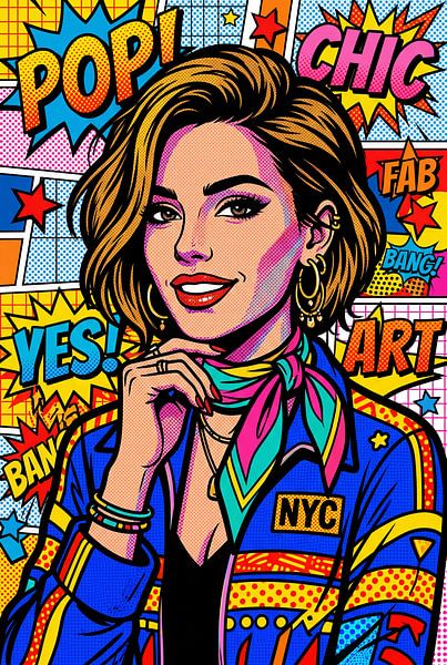 A pop art illustration of a modern woman