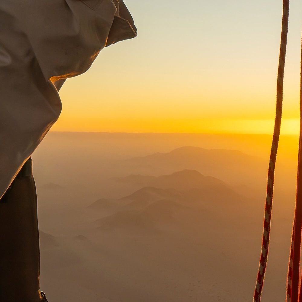The rising sun in the Namib Desert from the hot air balloon. A new beginning and a fantastic start to the day.