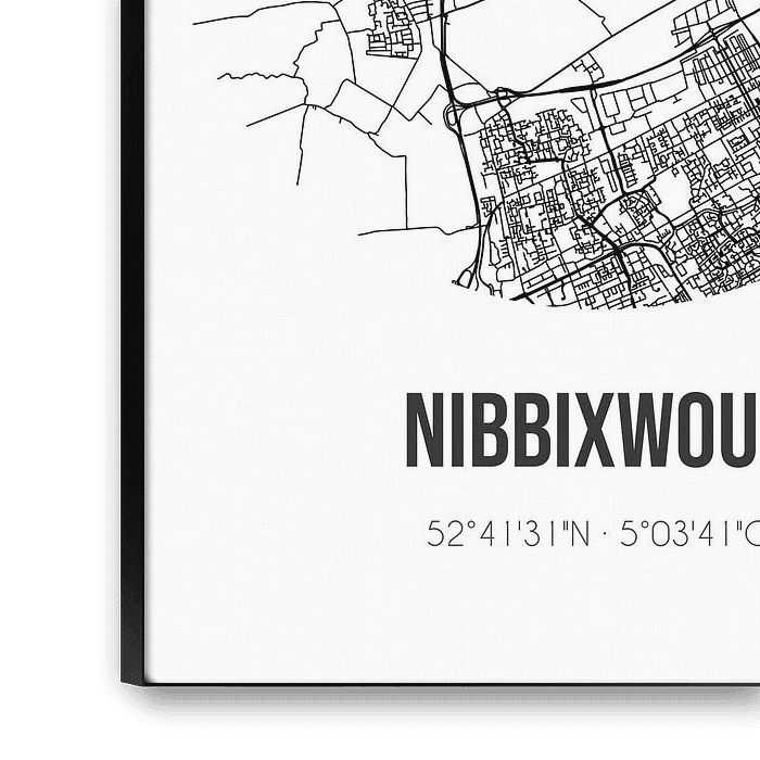 Black and white map, street map or street plan of Nibbixwoud. Nibbixwoud is located in the municipality of Medemblik, province of North Holland. On the city map all public roads in Nibbixwoud are included. Furthermore, the map is provided with the coordinates of the center of Nibbixwoud.