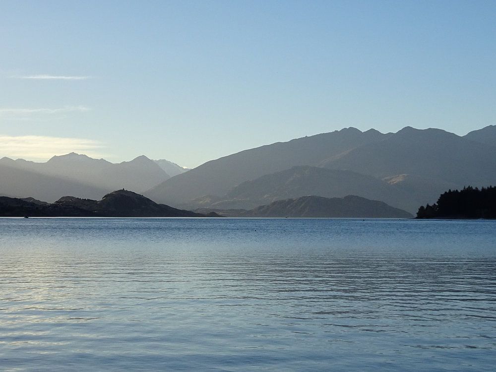 In de Nieuw Zeelandse plaats Wanaka is deze foto geschoten tegen een meer aan met bergen op achtergrond.