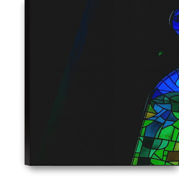 The Sagrada Familia reveals its mystical side in this nocturnal rendering of stained glass. The dark background makes the vibrant blue and green hues twinkle like stars in the sky, while the subtle play of light and shadow gives the geometric shapes a deep, almost cosmic dimension. This sculpture captures the spiritual essence of…