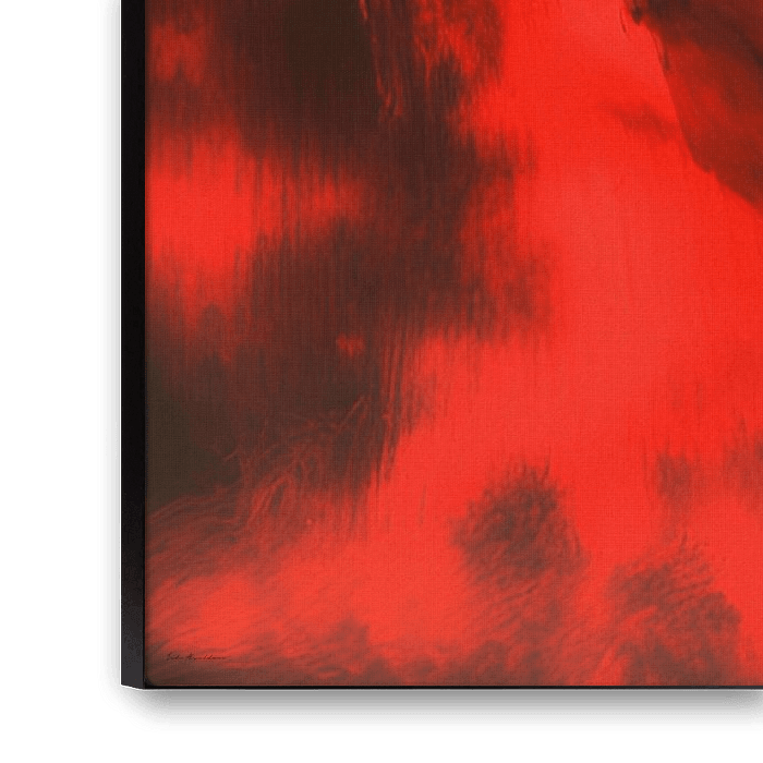 "See this dramatic work of art, with an enchanting figure in a striking red dress attracting attention. Her bold presence is enhanced by an intense gaze and blowing dark hair. Echoes of gothic elegance mingle with modern fashion sensibilities in this painterly illustration. This artistic piece is a powerful exploration of visual storytelling, mood and enchanting style."