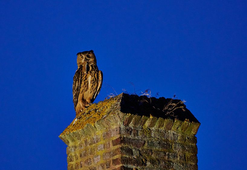 Night shot of an illuminated eagle owl with prey by Jürgen Ritterbach