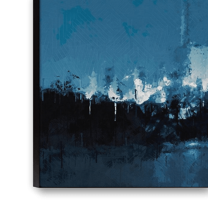 This view of a factory with cooling towers features the custom style "Deep Blue". The deep blue color palette gives your space a reliable business look. The finish gives the work a subtle abstract character. Our works in this style are very suitable for a business location such as an office or a conference center. This work is delivered to the printer with a high resolution and is therefore ideally suited to be printed very large.
