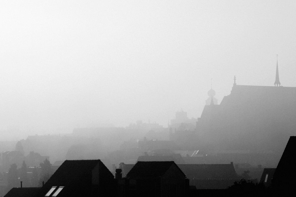 A foggy day with a view of the St Stevenskerk in Nijmegen