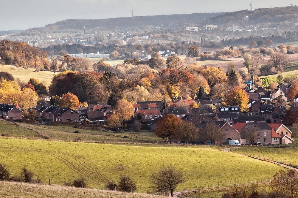 Meadows around Nijswiller with a view of Vaals and the Drielandenpunt (South Limburg, Netherlands)