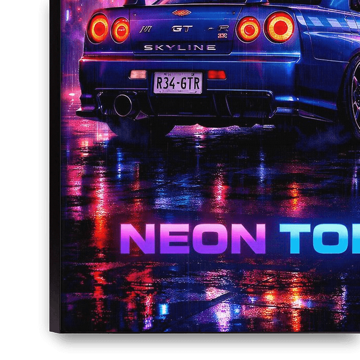 Buy this digital art artwork Nissan GT-R R34 Neon Tokyo Art by irgian firmansyah as a reproduction on canvas, ArtFrame, poster and wallpaper, printed on demand in high quality.