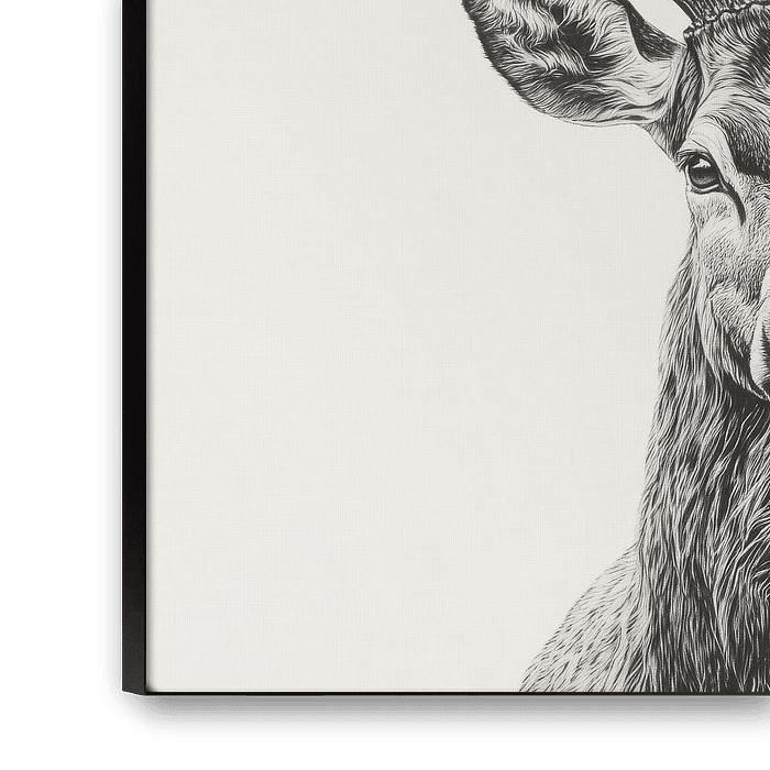 This impressive pencil drawing shows a majestic red deer in a classic portrait depiction that is characterised by its extraordinary attention to detail. The imposing antlers with their many ends dominate the upper half of the picture and lend the animal a regal aura. The monochrome colour scheme in various shades of grey creates a timeless elegance and focuses attention entirely on the masterful lines.