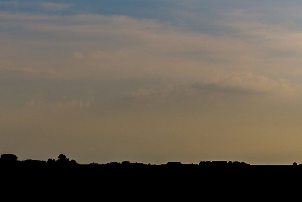 Het landschap naarbij de Eemshaven in Groningen in silhouet.