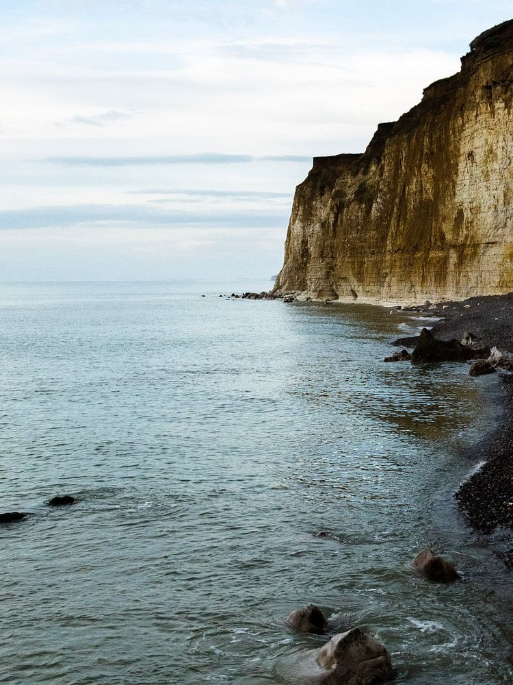 This beautiful photo shows the coastline of Normandy, with the sea, rocks and a bit of beach. The composition and play of light and shadow emphasise the natural beauty and tranquillity of this iconic location. The photo invites the viewer to appreciate the serene and timeless charm of the Normandy coast. Perfect for lovers of landscape photography and nature art.
