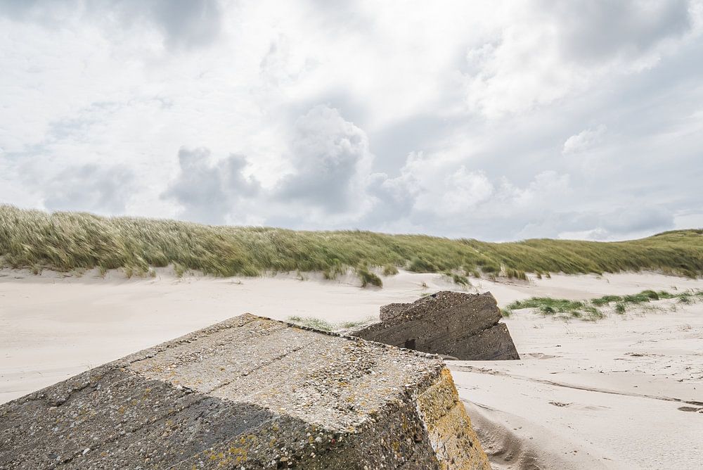 Dark clouds over dunes with in the foreground the remains of a bunker on the North Sea beach near the slufter valley on Texel. Taste the island feeling that makes Texel so special in this image.
