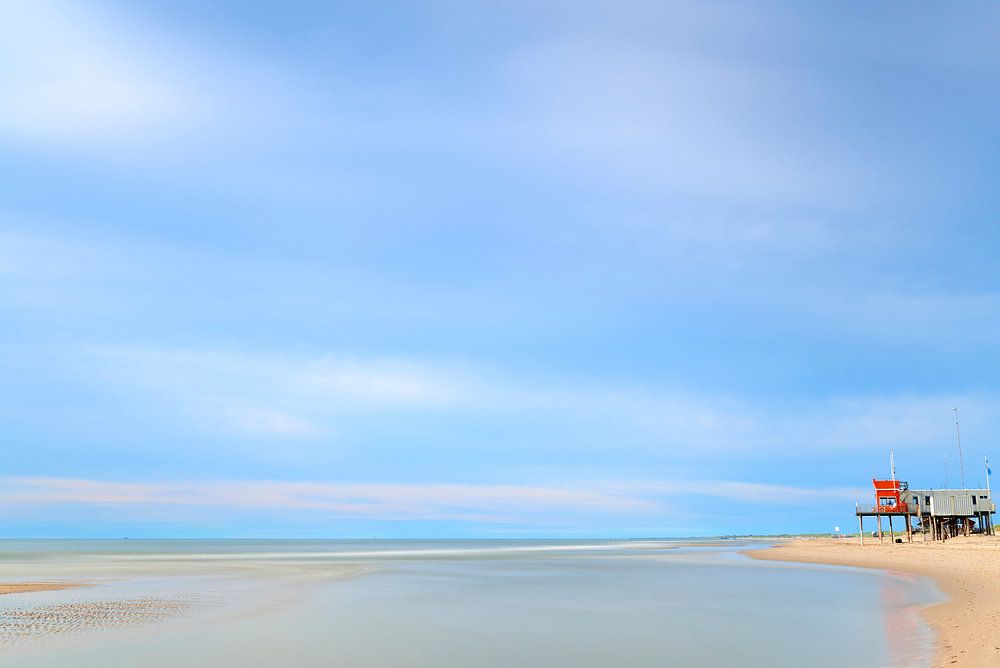 The photo was taken in the evening at a time when it was quiet on the beach. The red building on the right is from the rescue brigade.