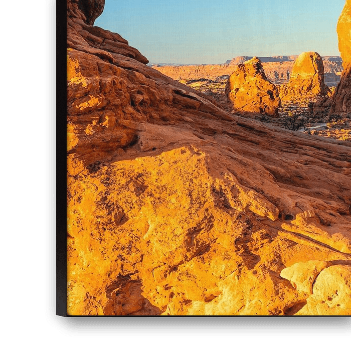 Buy this landscape artwork North Window at sunrise, Arches National Park, Utah, USA by Markus Lange on canvas, ArtFrame, poster and wallpaper, printed on demand in high quality.