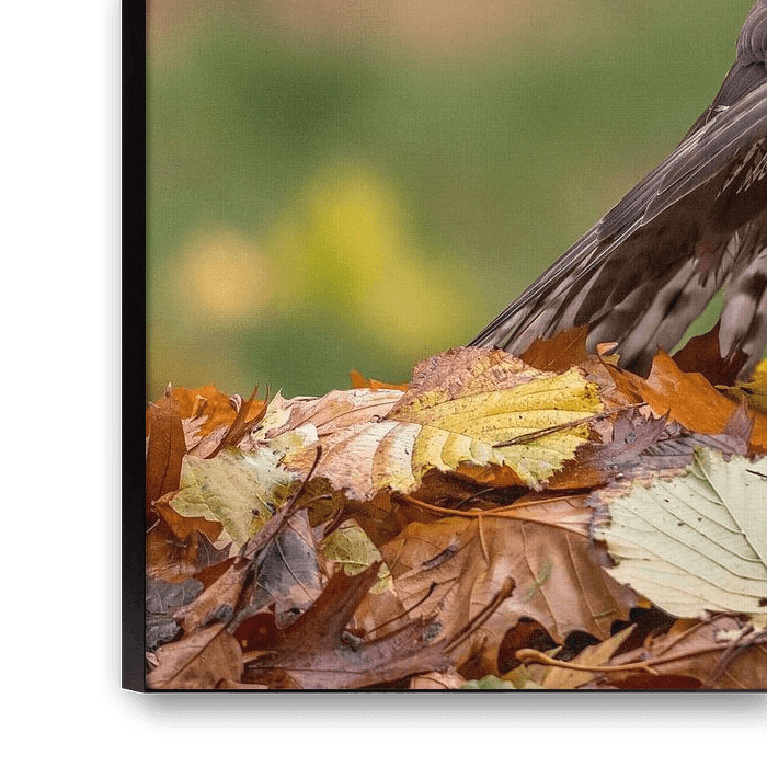A beautiful Northern Goshawk (Hawk / Accipiter gentilis) in an autumn setting while protecting its prey! The colored leaves add to the scene and create for a stunning image. This image was taken deep in a Dutch forest.