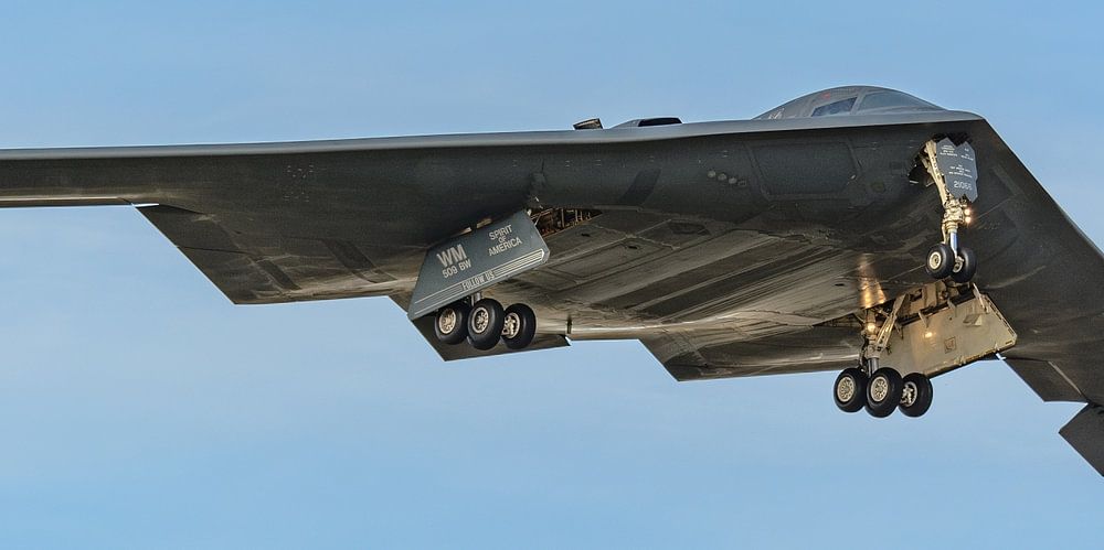 The Northrop Grumman B-2 Spirit is an American strategic bomber with stealth technology for intercontinental distances. The aircraft is capable of ejecting both conventional and nuclear weapons.