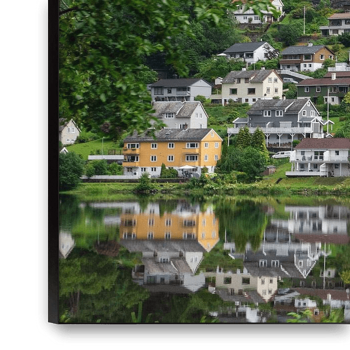 This quaint Norwegian town looked beautiful with its reflection in the windless lake. There was typical Norwegian weather that day with occasional rain and a cloud which made it a magical sight.