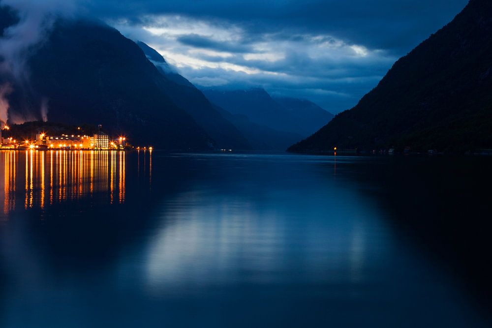 Norway, evening falls in a fjord