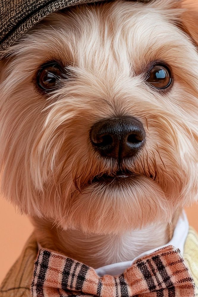With a charming chic that will make even the most elegant fade away, this Norwich Terrier exudes style in his unique outfit and protective cap. His distinctive moustache and sparkling eyes give him an unmistakable personality that is both playful and proud. A true gentleman on four paws!