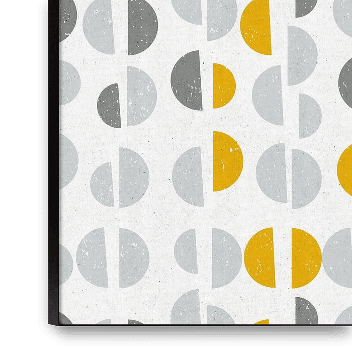 Buy this abstract artwork Nostalgic retro 70 semi circles geometric illustration in ocher yellow and grey. by Dina Dankers on canvas, ArtFrame, poster and wallpaper, printed on demand in high quality.