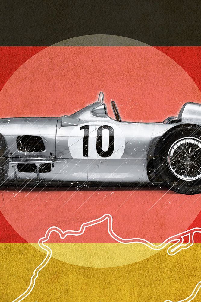 Buy this illustration Nurburgring Vintage MB by Theodor Decker on canvas, ArtFrame, poster and wallpaper, printed on demand in high quality.