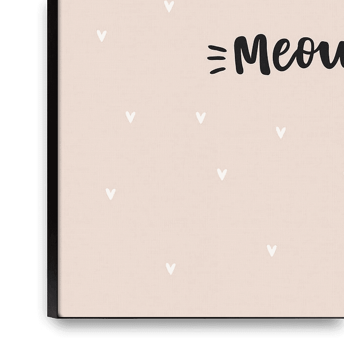 Kids Room Poster with funny cat. perky cat with golden crown on light pink background. with text: Meow This poster fits well with the other posters in this series. Hang them together or spread them over different walls.