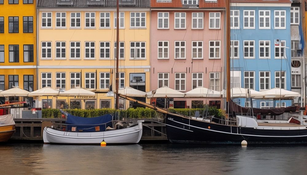 Nyhavn Copenhagen panorama painting that will be a wonderful addition to any room. With its unique and stylish look, it is a true eye-catcher. The brilliant colours and special design make this artwork 100% unique and original. It is the perfect photo print to complete your interior.