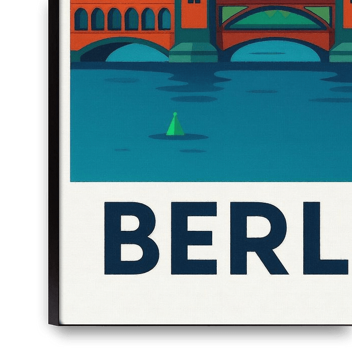 This stylised poster of the Oberbaum Bridge is based on our own photographs, which have been artistically abstracted and transformed into a modern illustration. The striking towers, the water of the Spree and the city skyline behind them create a powerful image that visualises the connection between tradition and modernity in Berlin.…