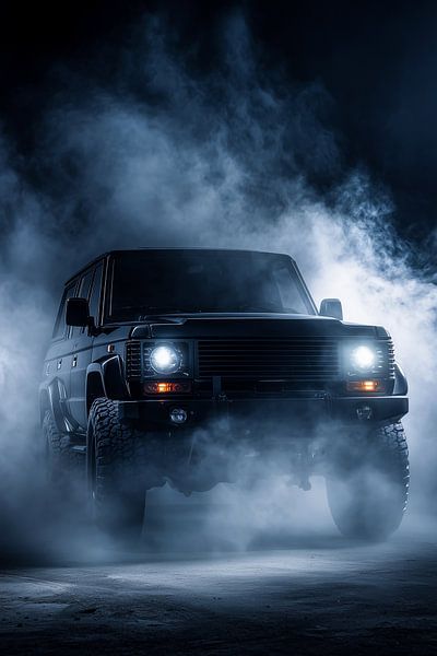 This Mercedes-Benz S-Class surges through a dramatic explosion of water and sand. The glowing blue headlights and golden lightning decals create a surreal, powerful aesthetic, blending high-end automotive luxury with the raw forces of nature.