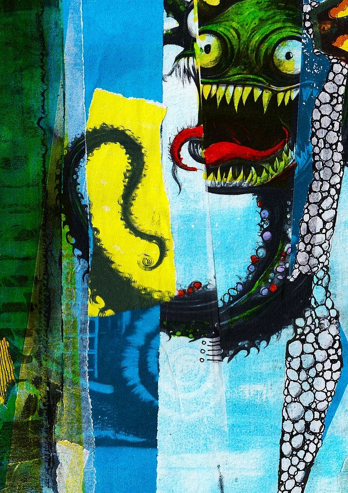 The monoprints were made with a gel plate and were later scanned in to be digitally completed using Photoshop with various pens and brushes. There is no longer any difference in which pen strokes I did analogue or digital.