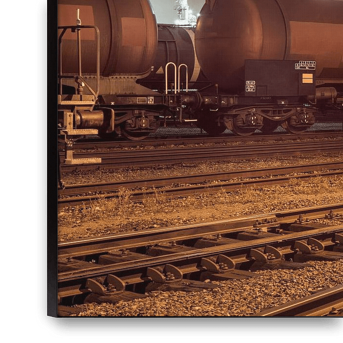 Buy the photo Oil refinery with train wagons at night by Tony Vingerhoets on canvas, ArtFrame, poster and wallpaper, printed on demand in high quality.