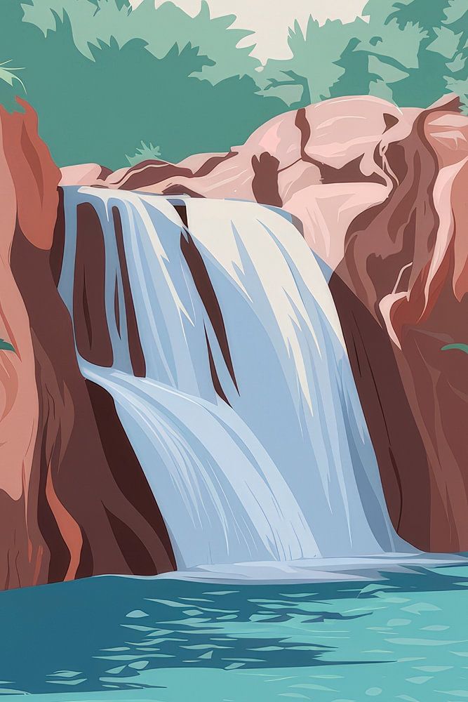 Gentle waterfalls cascade majestically over smooth rocks, surrounded by lush greenery. This harmonious spectacle of nature invites relaxation and conveys a sense of freedom and adventure. Ideal for the living room, it creates an inviting and calming atmosphere that enlivens any room and encourages daydreaming.