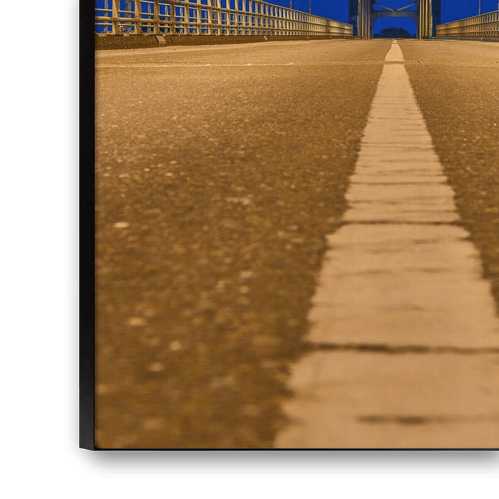 Evening photo of the Old IJsselbrug over the river IJssel between Zwolle and Hattem after sunset. View from the middle of the road on the old steel arch bridge.