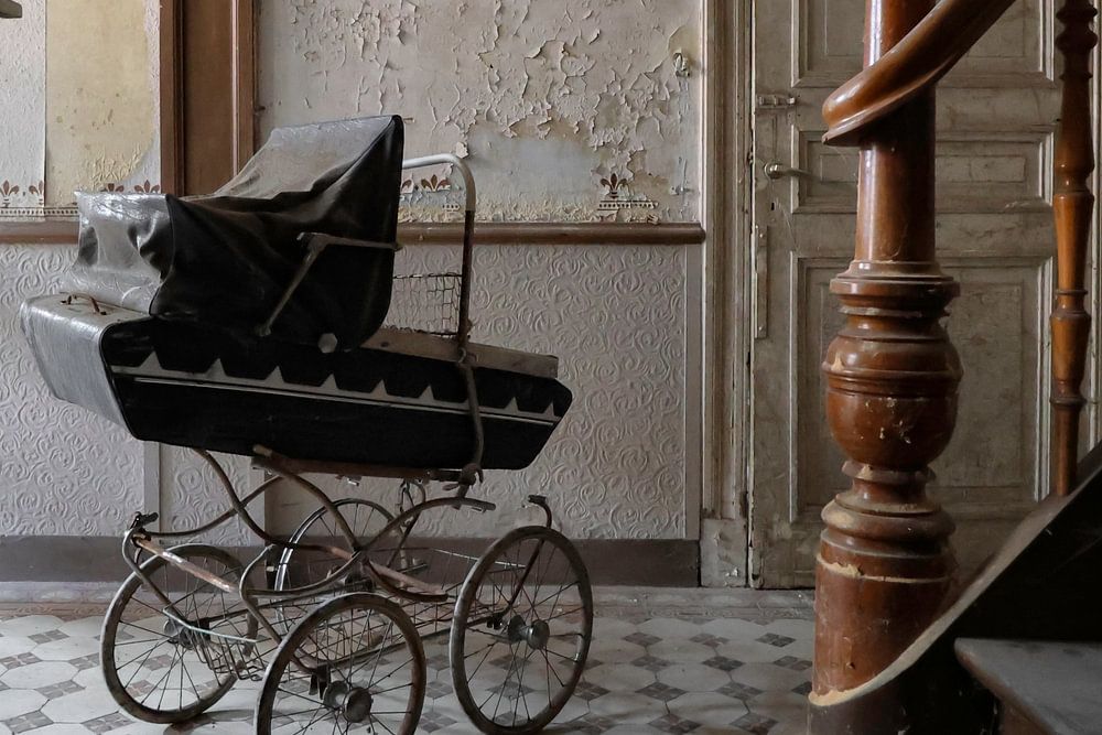 This old stroller was left alone in an abandoned house.
