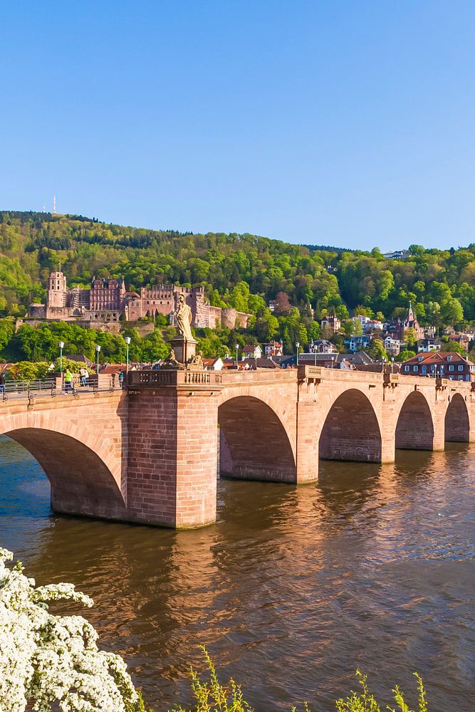 Heidelberg with the Old Bridge, the Heidelberg Castle and the Heiliggeistkirche in the old town.