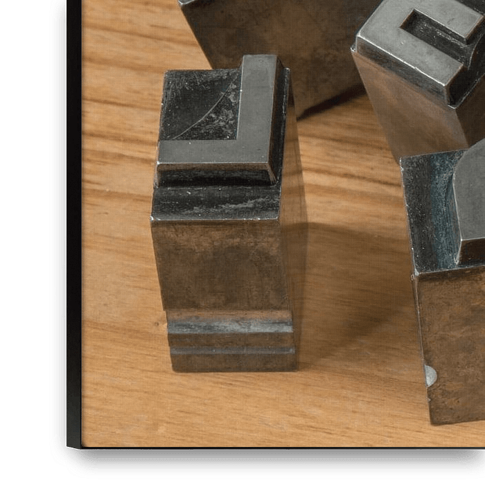 Old lead ink printing type from a book printing company. Historical metal letters from an old printing machine. Created and used in Netherlands in the middle of the last century.