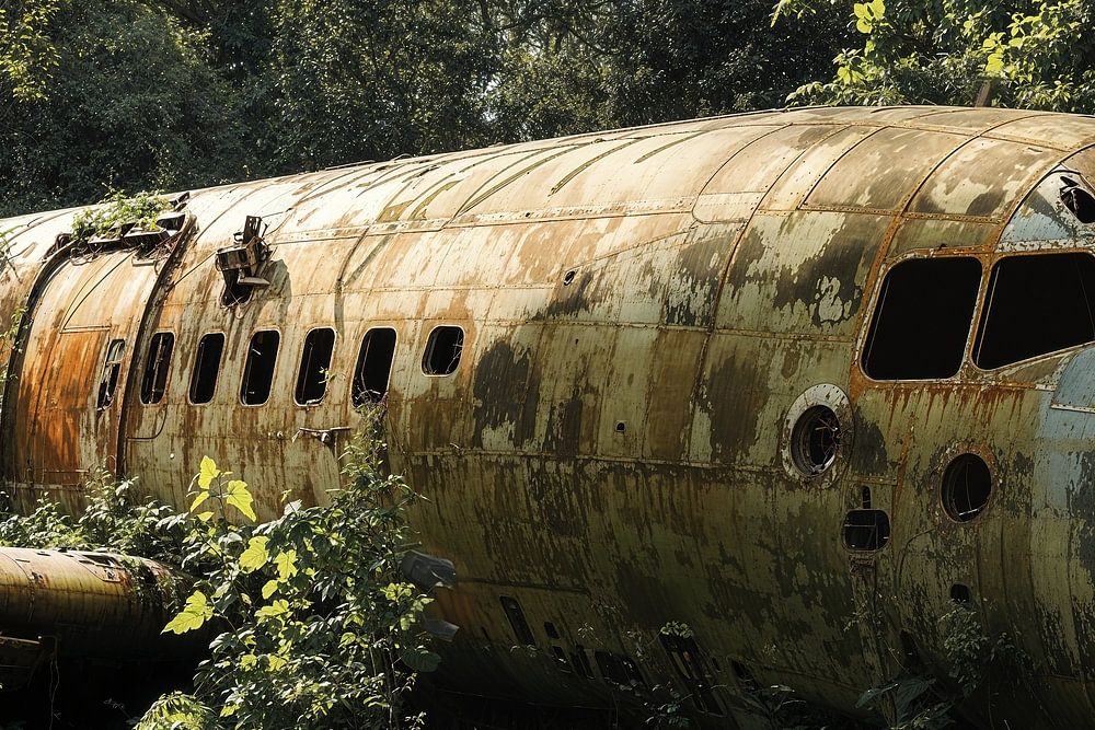 In a forgotten corner of the forest, an old plane lies hidden among the trees. Its metal skin is covered in a green layer of moss and leaves as nature has found its way to embrace this once proud machine. The wings have partially collapsed and the fuselage is rusty, but the aircraft still tells stories of past adventures and distant journeys. The contrast between its neglected engineering and the vibrant nature around it is fascinating. This silent testimony to times gone by evokes a sense of melancholy and wonder. It is a reminder of what once was, hidden in the tranquillity of the forest.