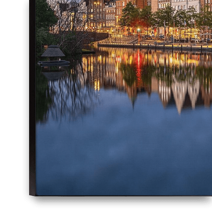 Your chosen art on canvas, stretched in an aluminum frame. Quick and easy to change for a fresh look and exactly as you want it.
