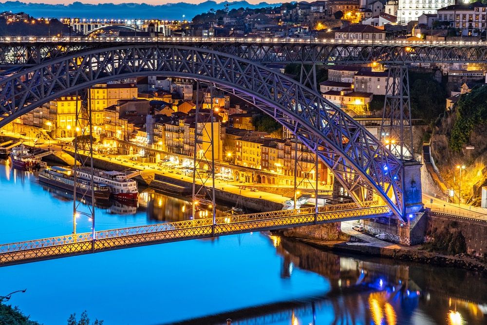 Ponte Dom Luis I Bridge over Douro river and the historic old town of Porto at dusk, Portugal, Europe | Dom Luis I Bridge over Douro river and the historic old town of Porto at dusk, Portugal, Europe