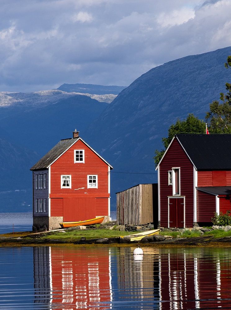 Oma Island is a small island near the village of Strandebarm lying in a quiet part of the large Hardangerfjord. It is privately owned. Years ago, I had come across this and had the desire to photograph it. My first pogong was with bad weather and now I finally managed to photograph it with beautiful afternoon sunlight. To me, this is very characteristic Norway with the red barn and white house surrounded by mountains.