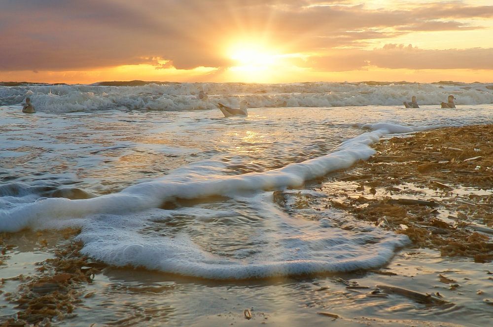 On Blåvand beach at sunset by the sea by Martin Köbsch