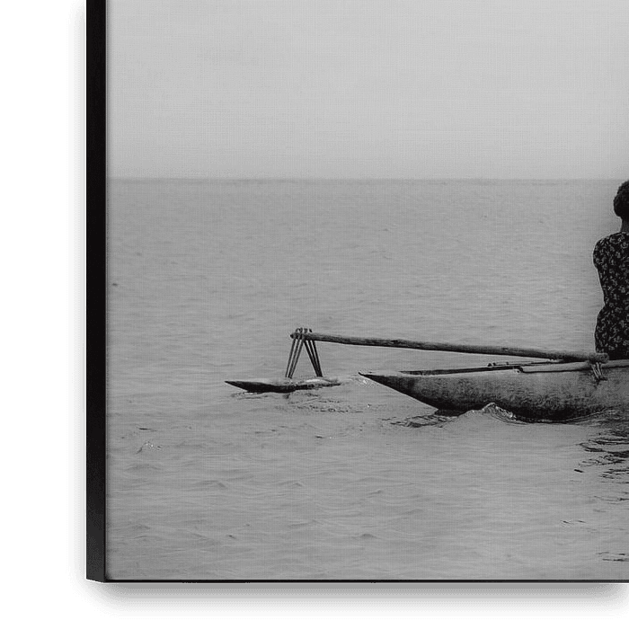 Women paddling home in homemade boat in Papua New Guinea.