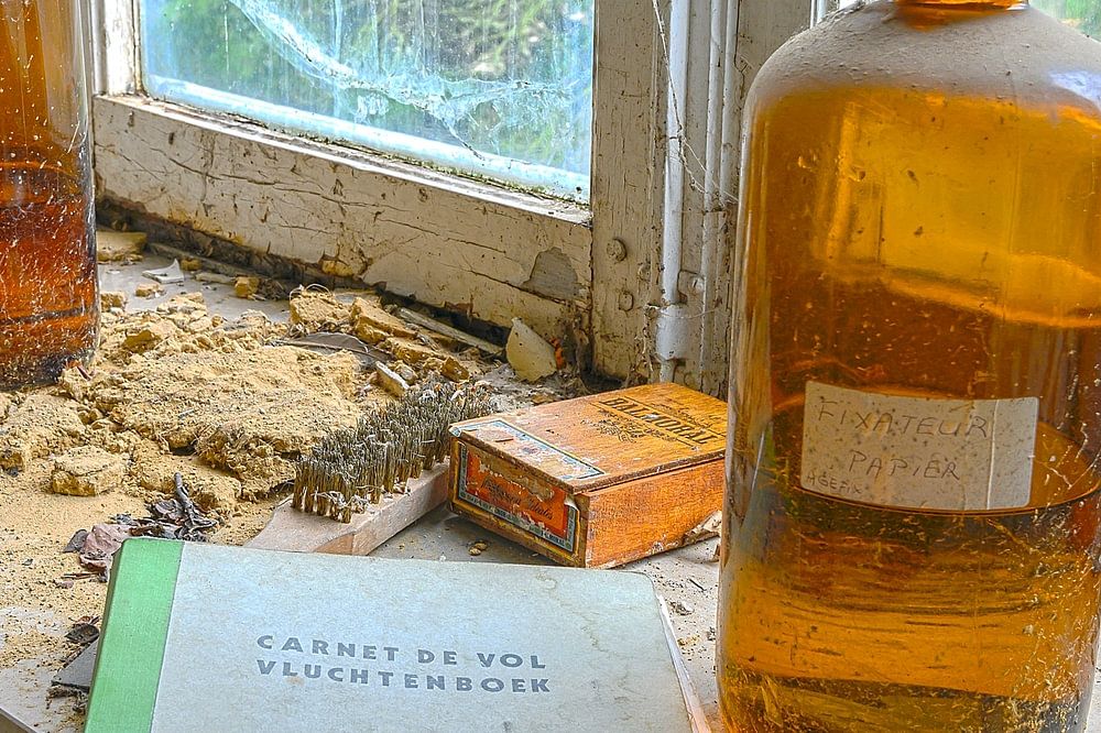 This beautiful abandoned chateau was once home to a pilot. Here is the flight hours booklet.