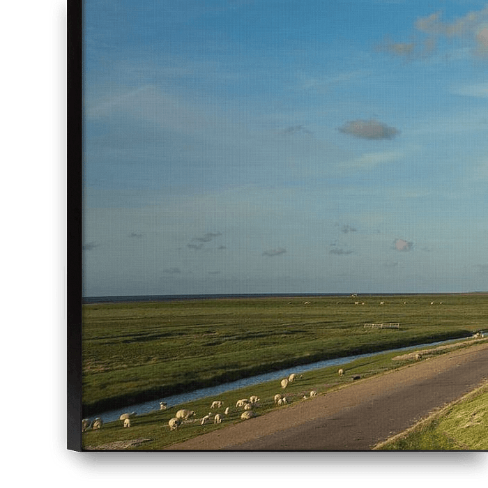 Peacefull space on the Waddendijk in North Groningen. On the left the salt marshes and the Wadden Sea and on the right the fields of the polder.