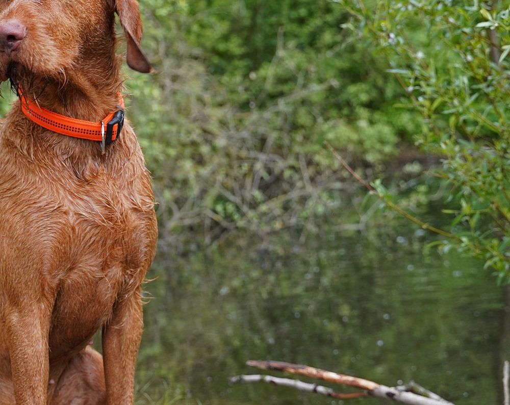 On the forest path with a brown Magyar Vizsla wirehair. by Babetts Bildergalerie
