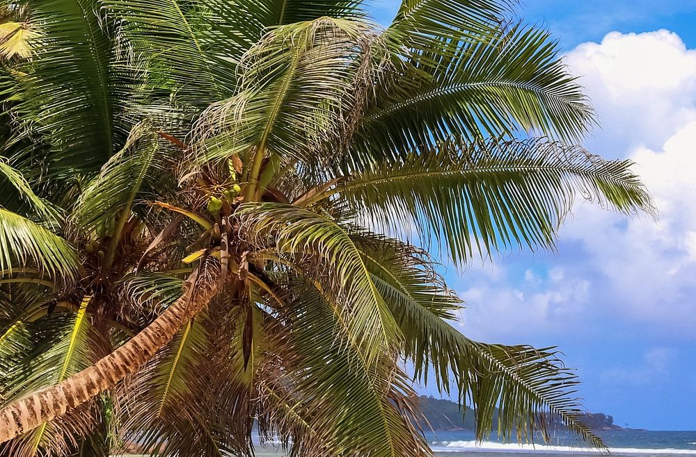 On the tropical Seychelles beach in summer