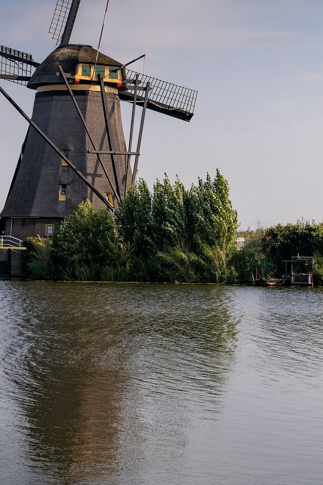 Walking in Kinderdijk, enjoying the beautiful landscape. Between the reed and the water are the mills that turn their blades. The peace and quiet is enjoying nature. With the sun and a heavenly blue sky, here and there a cloud.