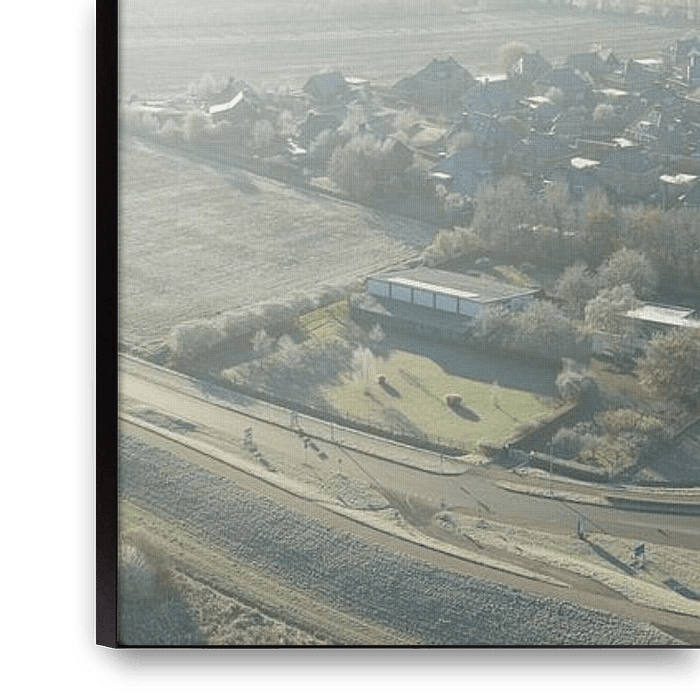 Onderdijks residential area in Kampen Overijssel, The Netherlands seen from above durig a cold winter morning. Onderdijks is one of the new residential areas in the city of Kampen on the banks of the river IJssel.
