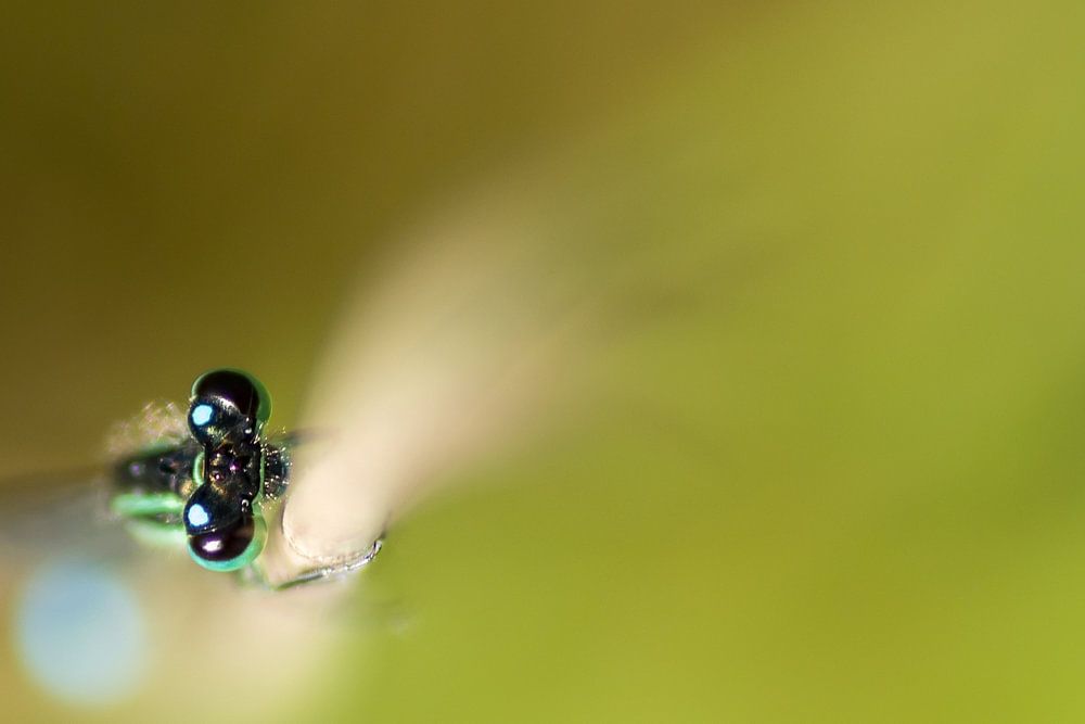 Particularly beautiful on damselflies and dragonflies are the eyes. When taken this photo of a damselfly, it is only focused on the eyes. It gives an almost abstract image.
