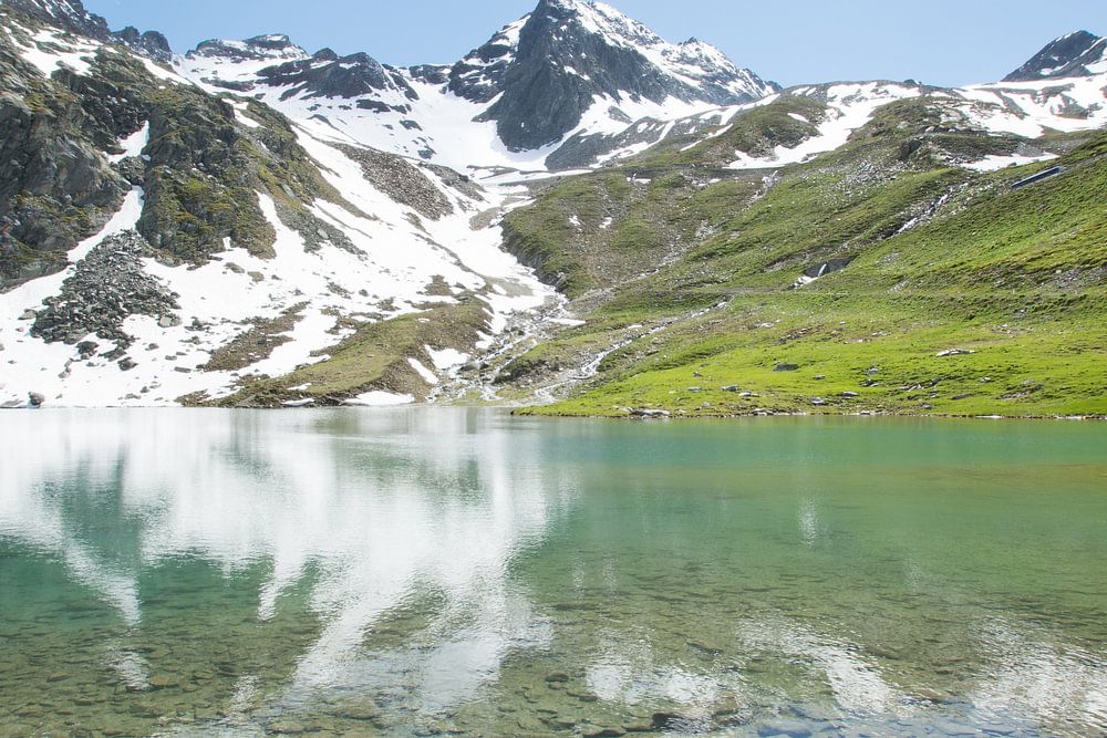 Een meer in Oostenrijk op 3000m hoogte. De combinatie van het strakblauwe water en de sneeuw op de bergen maakt dit een mooi contrastrijk plaatje.